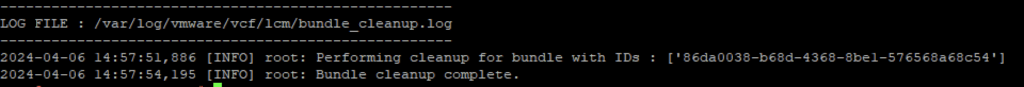 /opt/vmware/vcf/lcm/lcm-app/bin/bundle_cleanup.py 86da0038-b68d-4368-8be1-576568a68c54