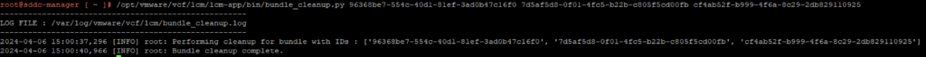 /opt/vmware/vcf/lcm/lcm-app/bin/bundle_cleanup.py 96368be7-554c-40d1-81ef-3ad0b47c16f0 7d5af5d8-0f01-4fc5-b22b-c805f5cd00fb cf4ab52f-b999-4f6a-8c29-2db829110925