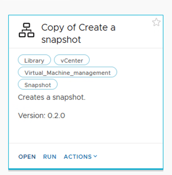 To get started we can go to Orchestrator -> Workflows -> search for Create a snapshot. Once found we can click on Actions -> Duplicate
