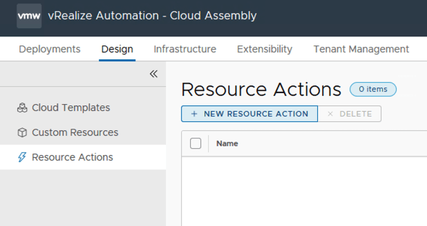 Go to Cloud Assembly -> Design -> Resource Actions click on new resource action