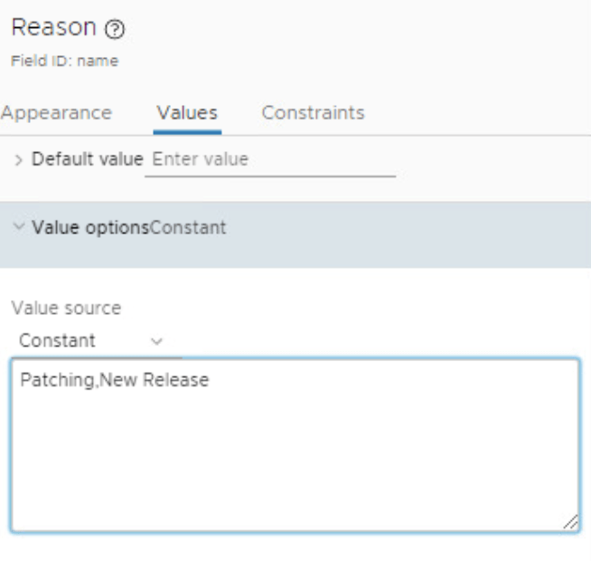 Under Values Type in the options that you want to have shown Separated by , ex: Patching,New Release