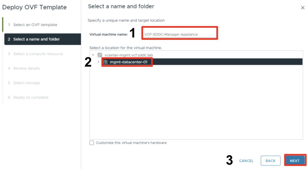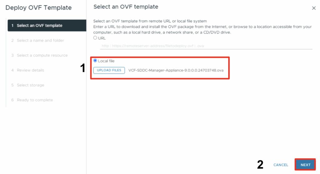 1. Log in to an existing vCenter with an user that has enough permissions to deploy an ova