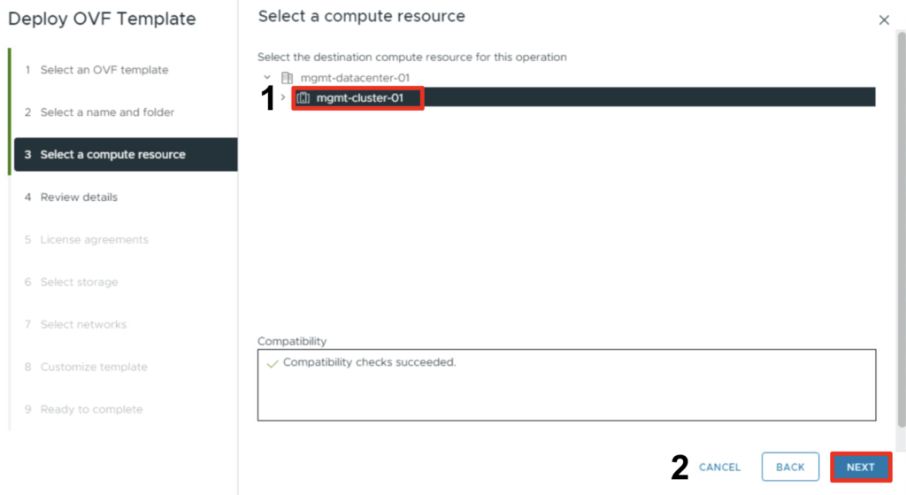 2. Right click on an existing cluster and click on Deploy from OVF Template