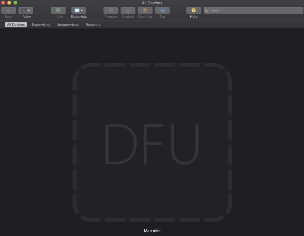 If you are presented with the DFU screen below in Apple Configurator 2 the procedure was done correctly