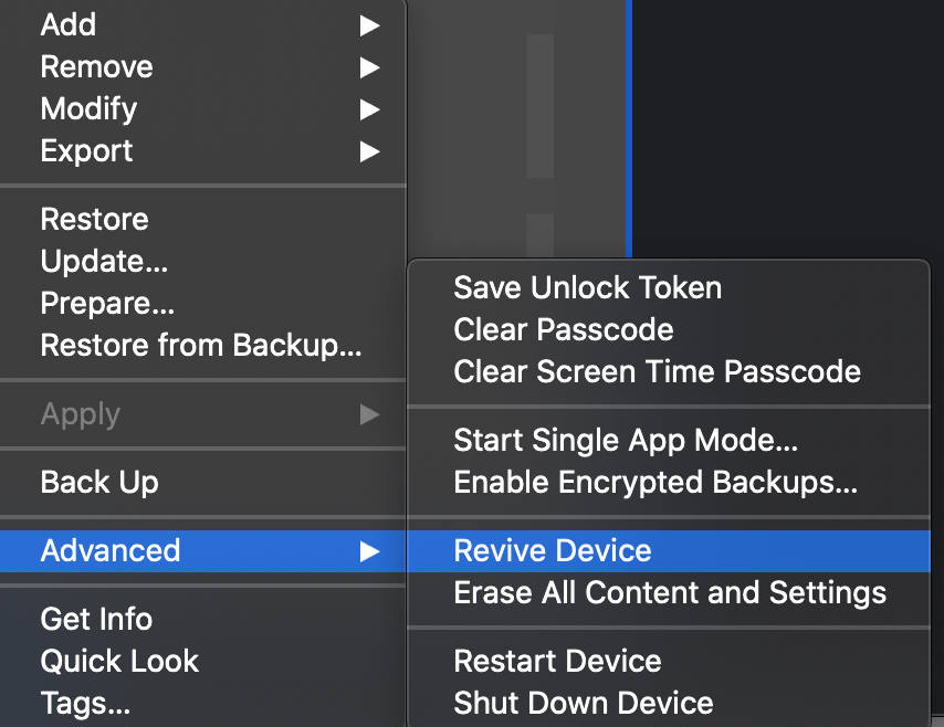 One the device is in DFU open Apple Configurator 2 (Mac Only sorry Windows folks). Make sure you are at least at version Version 2.13.2