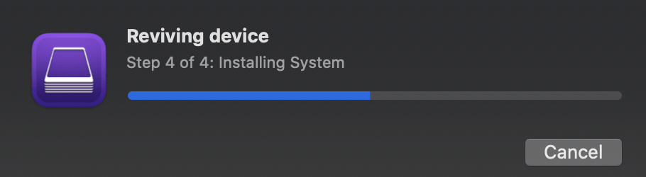 Apple Configurator 2 will go through downloading the firmware and perform a restore of the system