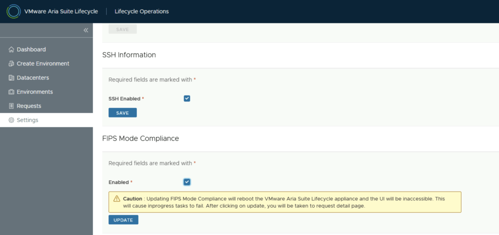 To get around it I had to enable FIPS mode in Aria Suite Lifecycle under Lifecycle Operations -> Settings -> Tips Mode Compliance -> check the enabled box -> Click Update