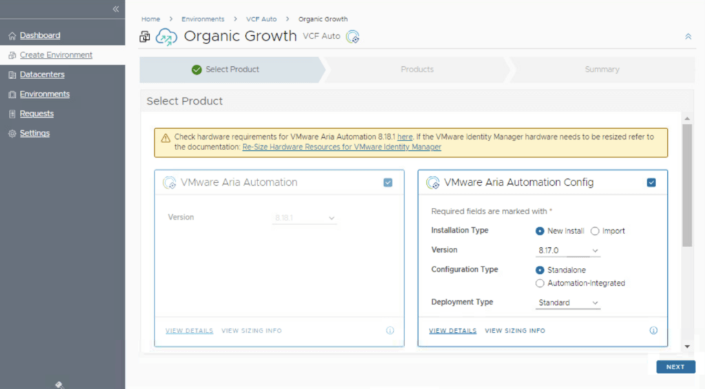 - VMware Aria Suite Lifecycle Manager 8.17: Ensure you have Lifecycle Manager installed and updated to version 8.17 or above.
