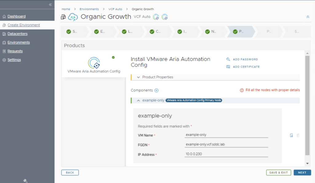 - Review your configuration settings (VM Name, certificate, FQDN, etc.).