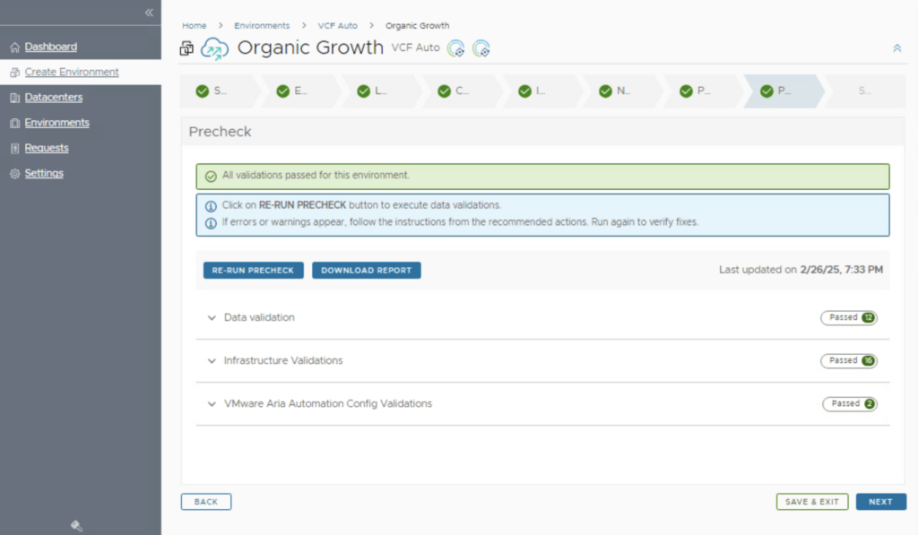 - Click Run Precheck to initiate a recheck of the inputed configuration.