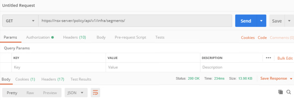 To list the segments we can use a get request towards /policy/api/v1/infra/segments/