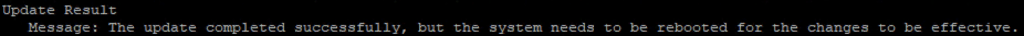 The installation reports that a reboot is required so I went ahead and rebooted the server