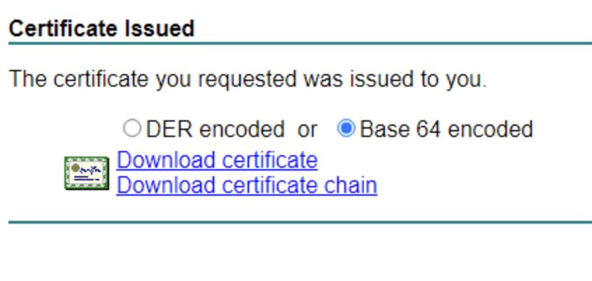 - Download the signed certificate: Once the CA approves and signs the request, download the certificate in Base64 PEM format (often a .cer or .pem file). Many enterprise CAs will give you the option to download as Base-64 encoded. Save this file (e.g., vidm_company_com.cer). If your CA provides separate files for intermediate and root certificates, download those as well.