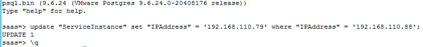 update "ServiceInstance" set "IPAddress" = '<newIPAddress>' where "IPAddress" = '<oldIPAddress>';