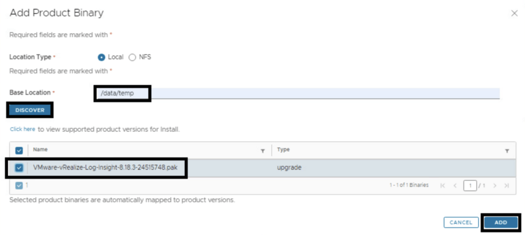 Due to changes in the 8.16 Aria Suite Lifecycle release (Release notes available here), My VMware based operations functionality has been deprecated. In my case, In this case, I chose to use Local and uploaded my .pak file to the /data/tmp directory on the Aria Suite Lifecycle appliance. The upgrade package can be downloaded from here.