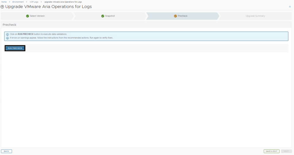 Run the Precheck to make sure there are no errors or issues.