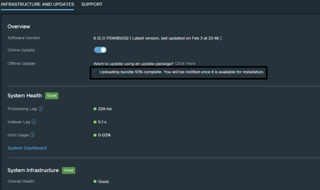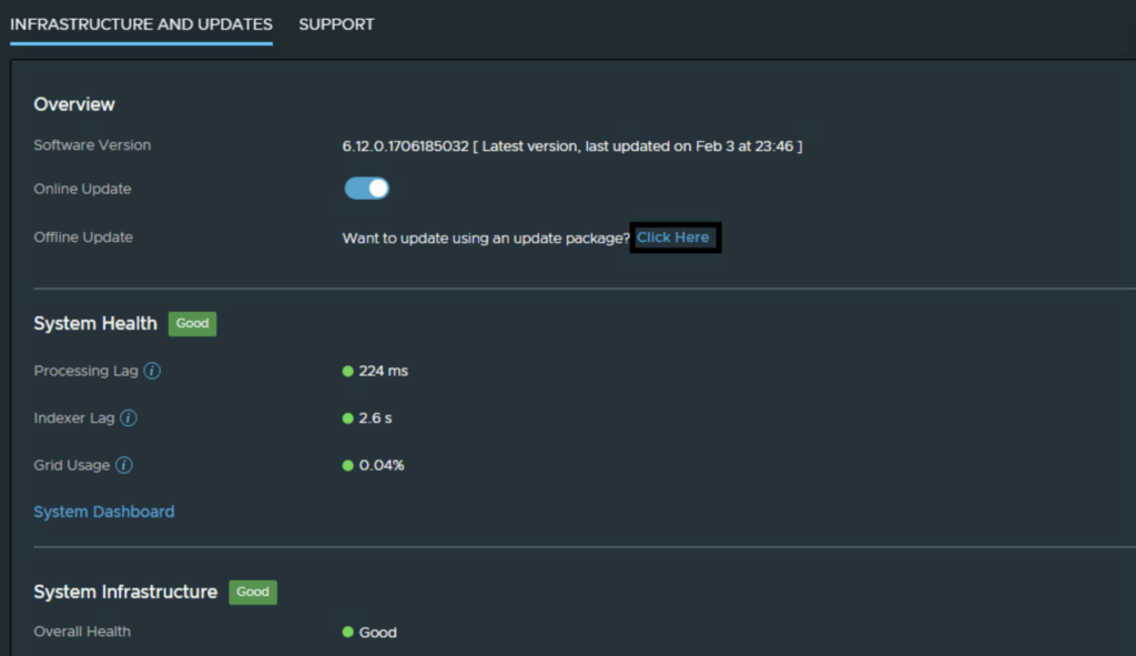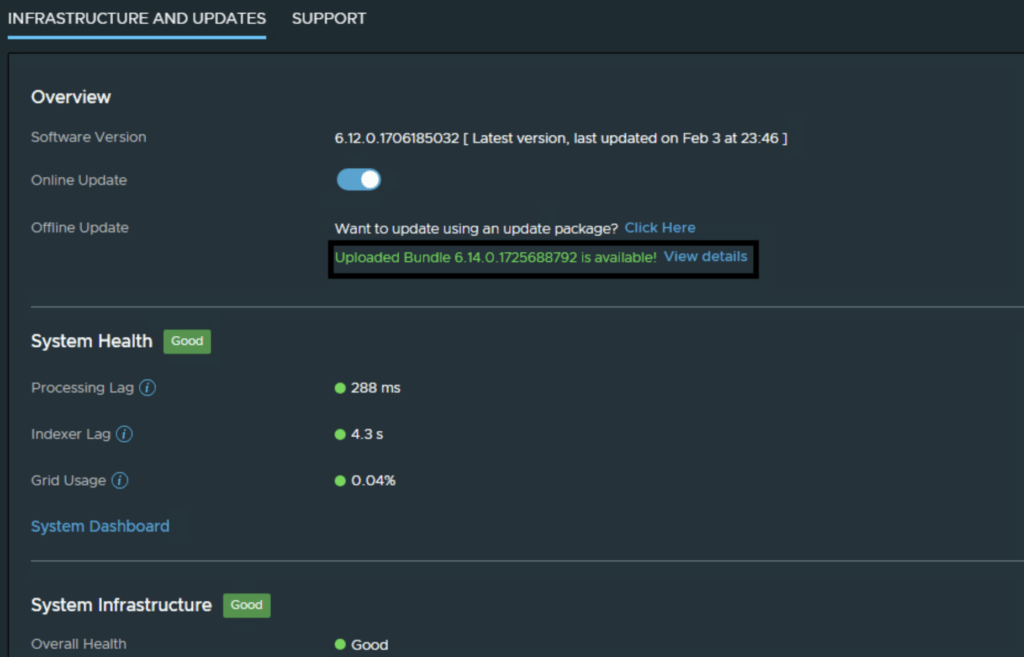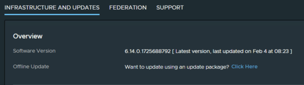 One the upgrade is complete we can verify it by going back to Settings -> Infrastructure and Support