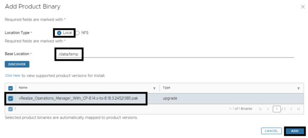 Due to changes in the 8.16 Aria Suite Lifecycle release (Release notes available here), My VMware based operations functionality has been deprecated. In my case, In this case, I chose to use Local and uploaded my .pak file to the /data/tmp directory on the Aria Suite Lifecycle appliance. The upgrade package can be downloaded from here.