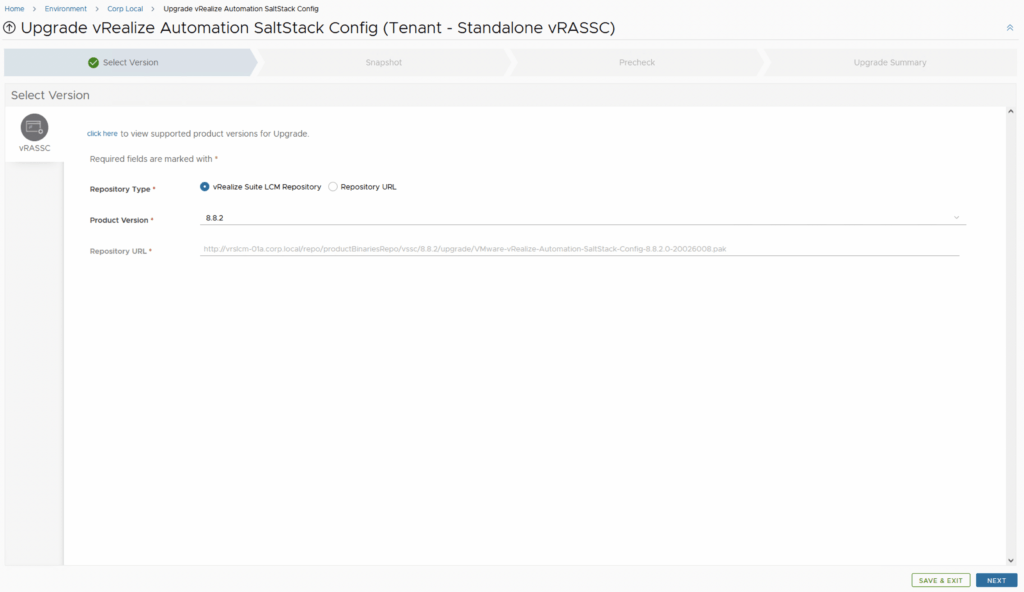 Select product Version 8.8.2 and click Next. We can also review the compatibility matrix to make sure the environment is compatible.