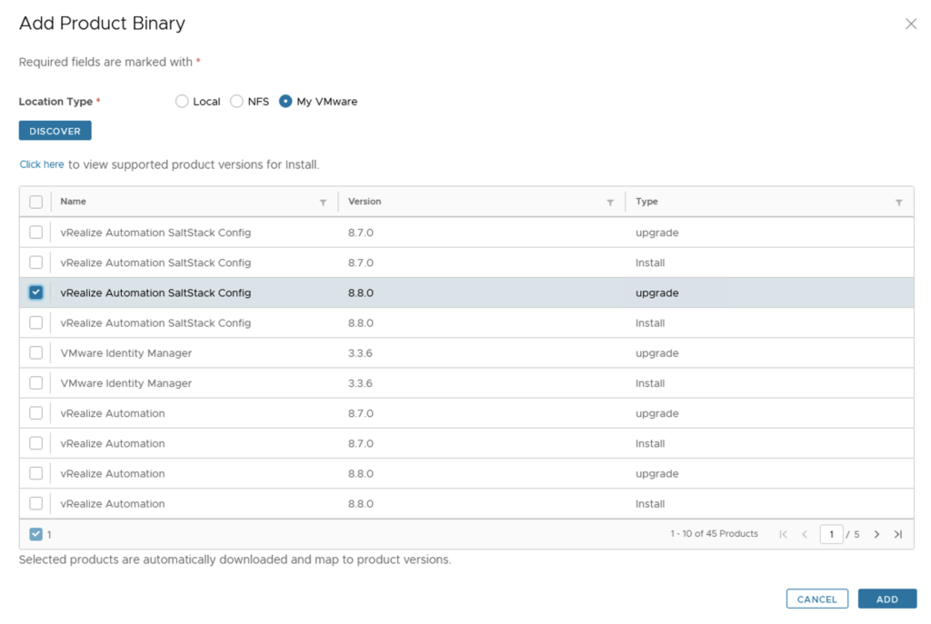 To get started we can go to vRealize Lifecycle Manager -> Lifecycle Operations -> Settings -> Binary Mapping. (If you haven’t added your My VMware credentials you will need to do that first by going to vRealize Lifecycle Manager -> Lifecycle Operations -> Settings -> My VMware)