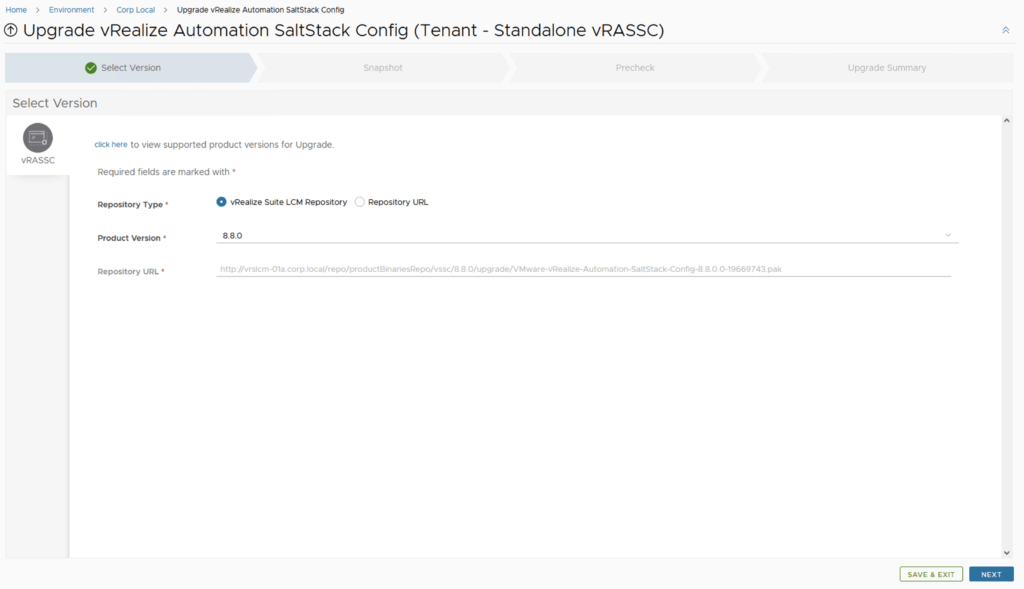 Select product Version 8.8.0 and click Next. We can also review the compatibility matrix to make sure the environment is compatible.