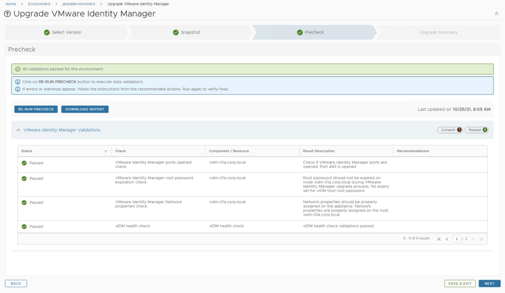 Once the check is complete we can review the checks that were performed and we can continue by clicking Next.