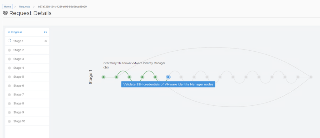 Review the upgrade details and click on Submit. We are then taken to the progress screen where we can follow the progress.