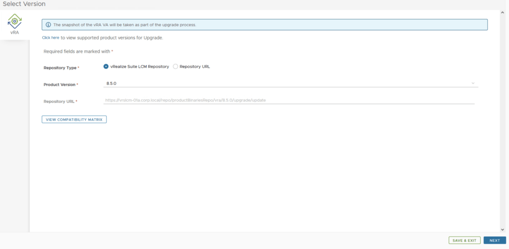 In this post i will go over upgrading my 8.x vRA appliance to 8.5. As a pre requirement we do need to have vRSLCM (vRealize Lifecycle Manager) upgraded to 8.4.1. Instructions can be found here. You will also need to apply the latest Product Support Pack (version 8.4.1.4). The instructions can be found here.