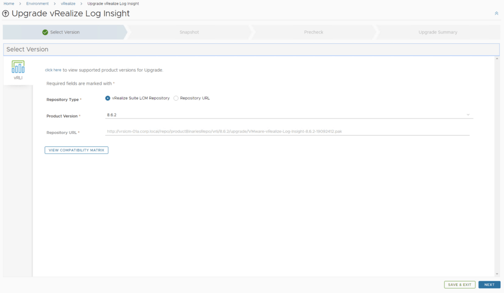 In this post i will go over upgrading my 8.x vRLI appliance to 8.6.2 using vRSLCM (vRealize Suite Lifecycle Manager). As a pre requirement we do need to have vRSLCM (vRealize Lifecycle Manager) upgraded to 8.6.2 or 8.7. Instructions can be found here. The upgrade already includes the latest Product Support Pack so an update to the Product Support Pack is not required.