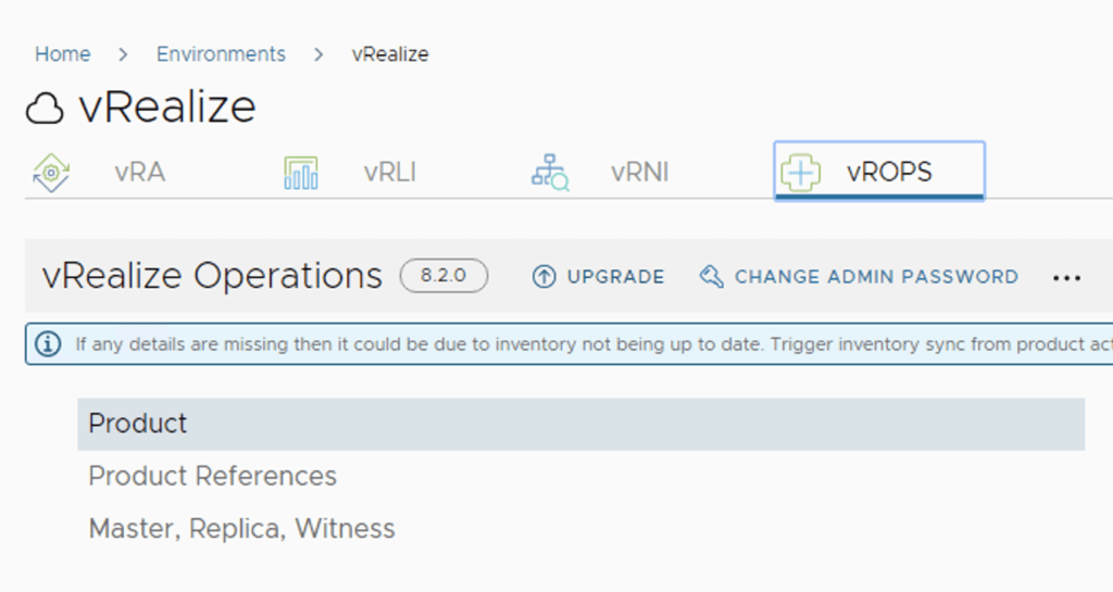 After the download is complete we can go to Environments -> View Details on the environment that includes vROPS