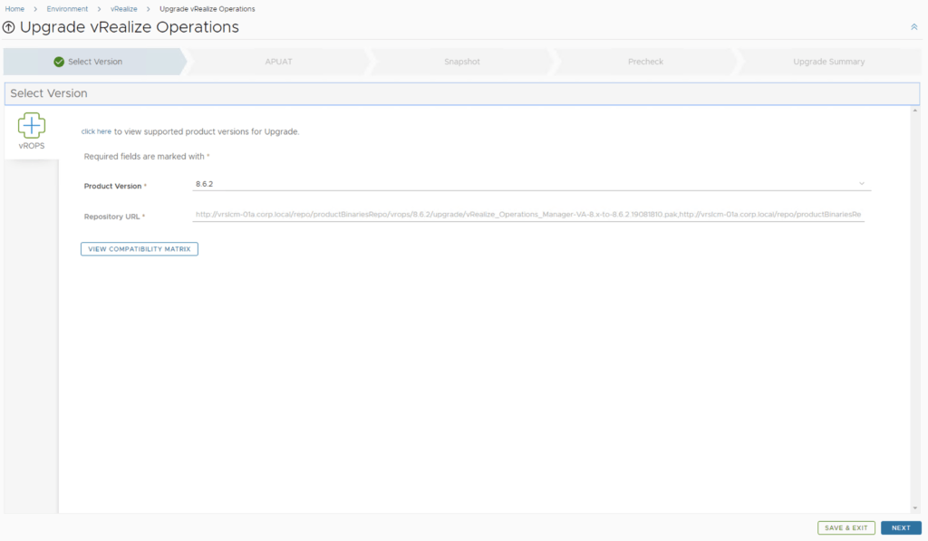 In this post i will go over upgrading my 8.x vROPS appliance to 8.6.2 using vRSLCM (vRealize Suite Lifecycle Manager). As a pre requirement we do need to have vRSLCM (vRealize Lifecycle Manager) upgraded to 8.6.2 or 8.7 Instructions can be found here. The upgrade already includes the latest Product Support Pack so an update to the Product Support Pack is not required.