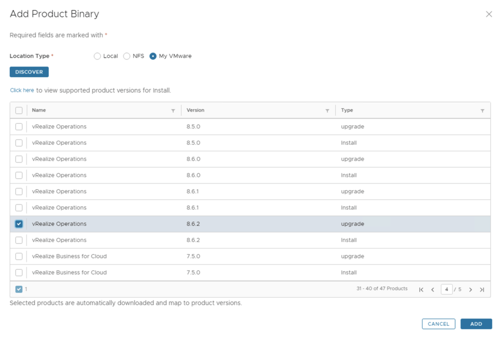 To get started we can go to vRealize Lifecycle Manager -> Lifecycle Operations -> Settings -> Binary Mapping. (If you haven’t added your My VMware credentials you will need to do that first by going to vRealize Lifecycle Manager -> Lifecycle Operations -> Settings -> My VMware)