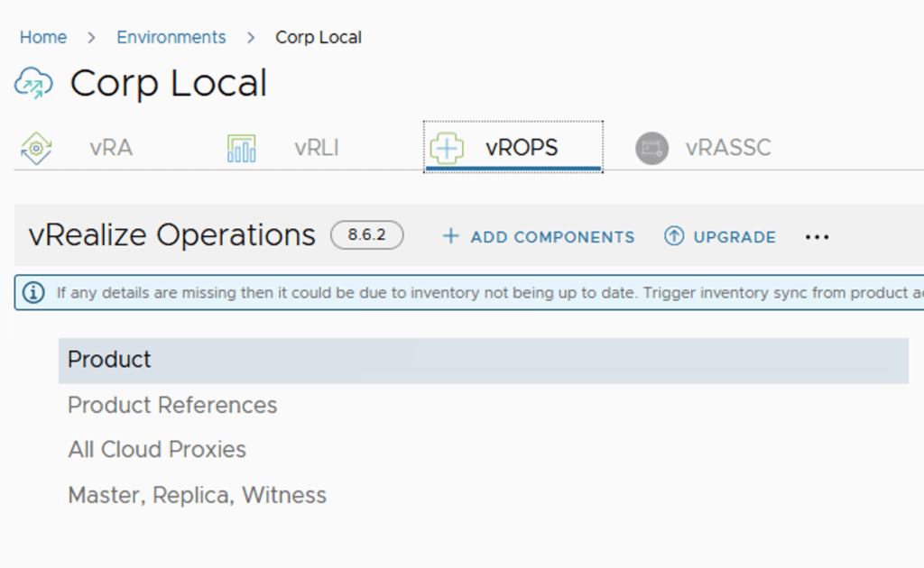 After the download is complete we can go to Environments -> View Details on the environment that includes vROPS