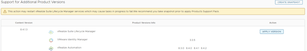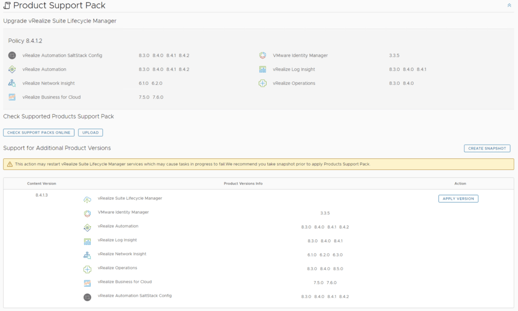 We can see that i recently upgraded to 8.4.1.2 however a new update is available 8.4.1.3. Based on what we can see in the details the new support pack adds support for network insight 6.3.0.